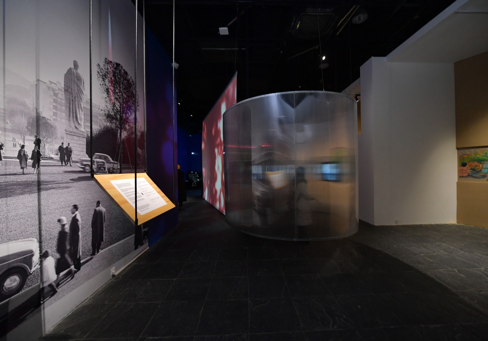 迷宮、暗室與陽(yáng)臺(tái),觀眾在踱步中反復(fù)經(jīng)歷著公共空間與私人空間的轉(zhuǎn)場(chǎng),在這個(gè)區(qū)域中,“公共”與“私人”之間的界限如一根極細(xì)的、繃緊的弦,揭露私密、分享秘密與集體記憶私人化的交疊營(yíng)造出了一種強(qiáng)烈的不安定感。