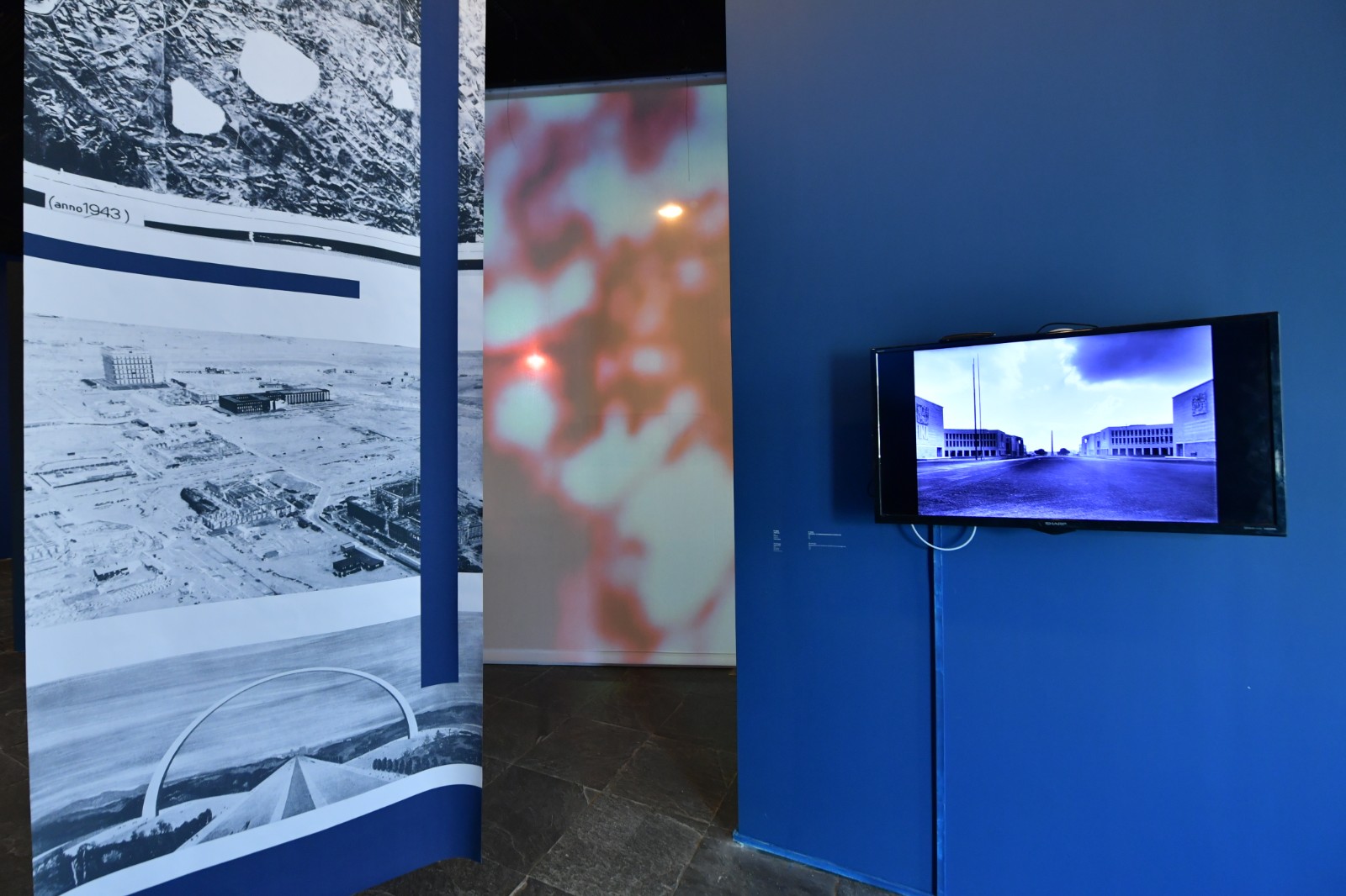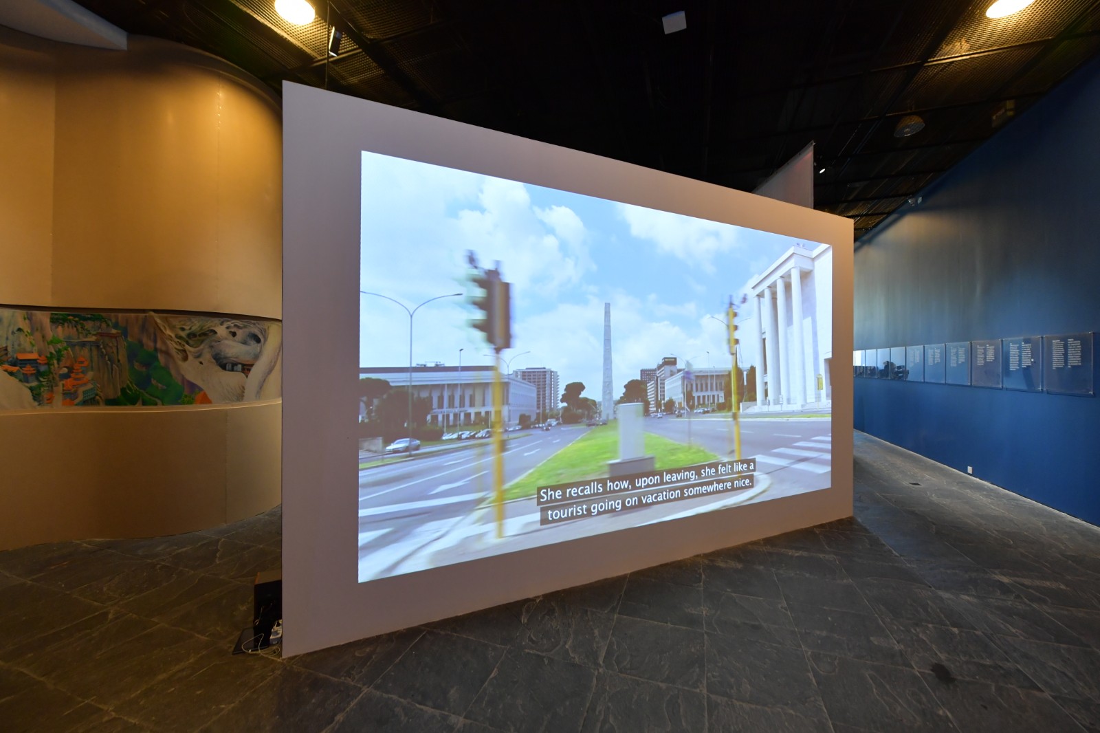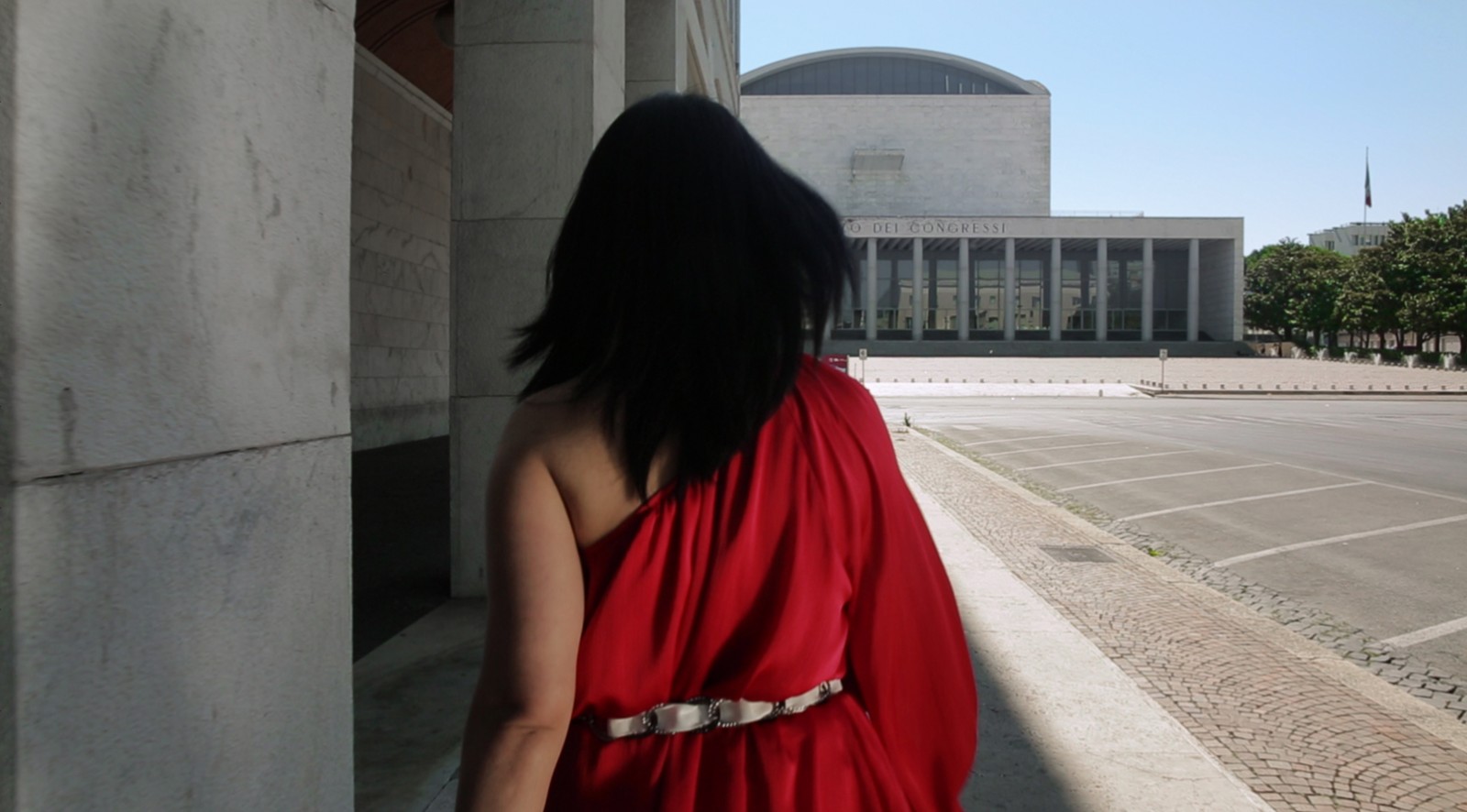 梅·海瑟格(Maj Hasager)《我們將在盲點(diǎn)相遇》是展覽呈現(xiàn)的最后一件作品,其講述了關(guān)于羅馬新城EUR區(qū)(Esposizione Universale di Roma)里的菲律賓移民的故事。這座由墨索里尼親自監(jiān)督設(shè)計(jì)的,以法西斯美學(xué)構(gòu)想出來(lái)的烏托邦城市,直至1960年才建成并被逐步被開(kāi)發(fā)為羅馬新的富人區(qū)。海瑟格把眾多意大利導(dǎo)演在EUR區(qū)攝制的紀(jì)錄片、電影所刻畫(huà)的城市公共記憶,與這群定期在市中心一座教堂的地下室聚會(huì)的移民社群一同放入她的影像作品中,影像記錄了這個(gè)群體的閑暇時(shí)光,以一種個(gè)人的、私密的視角探索了菲律賓移民的私人記憶與生活如何融入并生存于這座有著強(qiáng)大歷史記憶的城市之中。正如約翰·伯格(John Berger)在《第七人》中的論述:“兩群不同的人在任何情況下,永遠(yuǎn)都是共性大于差異性的。只是由于種種原因,環(huán)境蒙蔽了人們的眼睛?!盵7]我們看得見(jiàn)的是歷史的記憶碾壓而過(guò)留下的軋痕以及其帶來(lái)的城市變遷,而看不見(jiàn)的是居于其中的人是如何在此種變遷中安放自我的記憶與故事。從這個(gè)立意來(lái)看,展覽所討論的議題似乎又回溯到了“公共”與“私人”,“歷史”與“記憶”之間的連接,然而涉及的場(chǎng)域已經(jīng)擴(kuò)展到了一個(gè)城市或是一種文化以外。