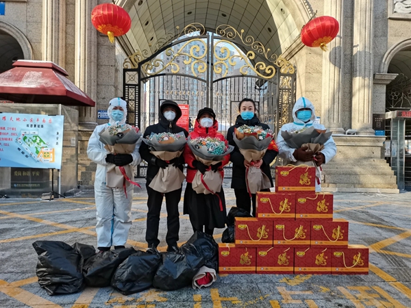 黑龍江經(jīng)濟網(wǎng)訊(靳超 記者崔冰)慰問暖人心,關(guān)懷顯真情。2月3日,黑龍江省誠信建設(shè)促進會會長張波、副會長于海波帶領(lǐng)秘書處人員來到哈市榮耀天地小區(qū)看望慰問堅守在抗疫一線的寶宇物業(yè)管理有限公司的工作人員,傳遞殷切關(guān)懷。張波會長和物業(yè)工作人員們深入交流,詳細了解了他們近期的工作和生活情況,并為他們送來紅腸及由哈爾濱市萬花集鮮花店捐贈的鮮花等物資。
