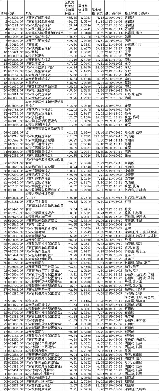 其中,基金經(jīng)理謝昌旭所管理的3只基金墊底,華安醫(yī)療創(chuàng)新混合(008359)、華安新絲路主題股票(001104)、華安雙核驅(qū)動混合(006121)節(jié)后分別虧損25.75%、24.65%、23.74%。