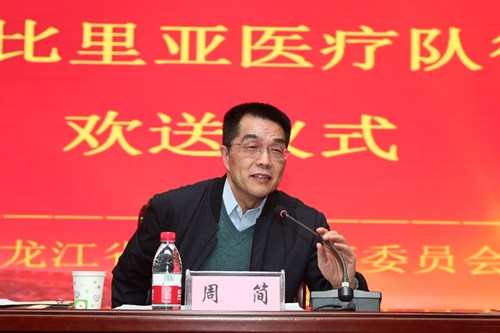 周簡(jiǎn)書記代表國(guó)家衛(wèi)生健康委,以“再武裝、再出發(fā)、再戰(zhàn)斗”為題,從思想準(zhǔn)備、組織準(zhǔn)備、技術(shù)準(zhǔn)備、物資準(zhǔn)備等四個(gè)方面向醫(yī)療隊(duì)寄語(yǔ)。他指出,中國(guó)對(duì)外衛(wèi)生援助淵遠(yuǎn)流長(zhǎng),在半個(gè)多世紀(jì)的時(shí)間里,黑龍江省共派出1030人次醫(yī)務(wù)工作者參與了援外醫(yī)療工作,積極踐行國(guó)際人道主義精神,勇于克服種種困難,砥礪前行,為受援國(guó)留下了“帶不走的醫(yī)療隊(duì)”。醫(yī)療隊(duì)促進(jìn)了當(dāng)?shù)蒯t(yī)療衛(wèi)生事業(yè)的發(fā)展,有力地支持了我國(guó)的外交工作,為推進(jìn)人類和平與發(fā)展的崇高事業(yè)做出了貢獻(xiàn)。當(dāng)前,面對(duì)全球肆虐的新冠肺炎疫情,中非合作抗疫刻不容緩,醫(yī)療隊(duì)員面臨的任務(wù)更艱巨,但是使命光榮。