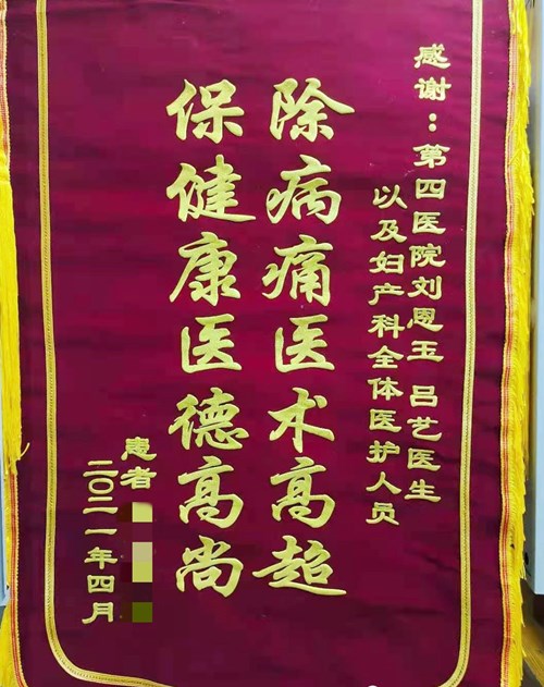 董女士帶著一面錦旗來到了婦產(chǎn)科,表達自己深深的謝意,她說:“感謝四院婦產(chǎn)科對我的幫助,讓我最大限度減少創(chuàng)傷,尤其出院以后的這段時間,主任和呂醫(yī)生也一直關注我的恢復情況,定期為我換藥,督促我加強護理。我心里特別感激!”