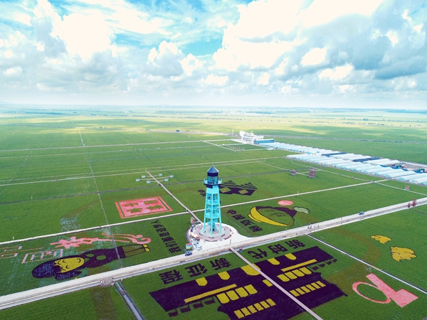 富錦市萬(wàn)畝水稻公園稻田畫航拍(圖片由黑龍江省文旅廳提供)