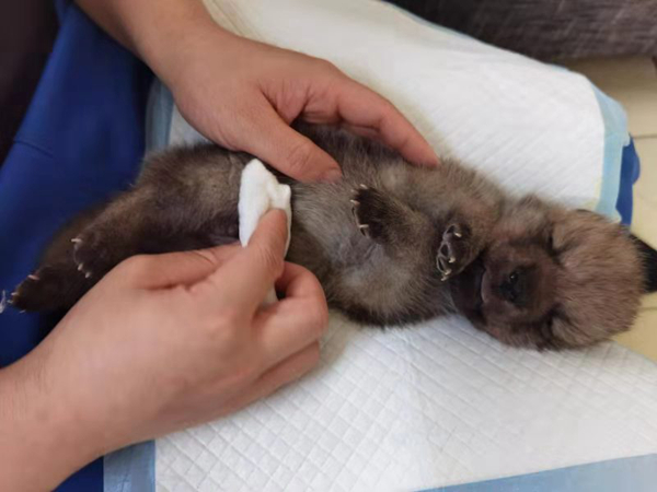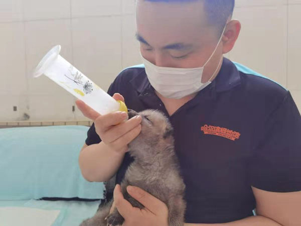 據工作人員介紹,5月上旬,哈爾濱極地公園北極狼家族新生多只北極狼寶寶。為保證母狼和新生小狼的安全,馴養(yǎng)師24小時通過監(jiān)控觀察北極狼媽媽和寶寶的情況。三天后,一只狼媽媽出現奶水不足、棄養(yǎng)小狼的情況。為保證狼寶寶的安全,馴養(yǎng)師決定將狼寶寶采用全人工技術飼養(yǎng),取得了成功。