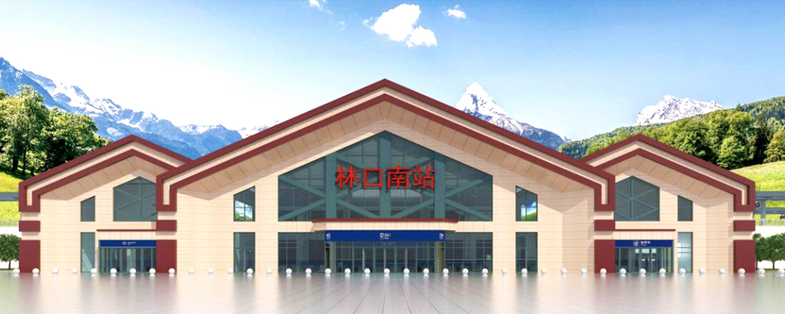 林口南站建筑面積2998.19平方米,可容納800旅客候車。設(shè)2條正線,2條到發(fā)線,站房外觀設(shè)計(jì)如同“林中木屋”,融入林口縣特有的“山水神秀”文化底蘊(yùn),給人以厚重堅(jiān)實(shí)之感,并將英雄之城的紅色文化融入其中,象征城市精神如山巒屹立。兩側(cè)較小體塊烘托中部門式造型,窗格構(gòu)件相互交織,如森林霧凇,體現(xiàn)寒冷地區(qū)建筑特質(zhì),具有雪原建筑意向。車站穩(wěn)重大氣、簡潔壯麗,通過現(xiàn)代建筑語言詮釋了站房的人文之靈,彰顯現(xiàn)代交通建筑特征。