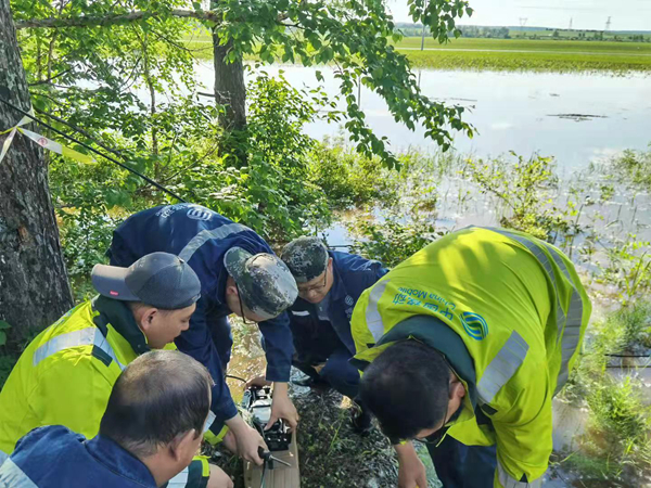 在呼瑪河監(jiān)測現(xiàn)場,大興安嶺水文水資源中心副主任李闖介紹了防汛形勢嚴峻的呼瑪河下游水文情況,“呼瑪橋水文站截止到6月22日晚18時,當(dāng)前水位96.20米,仍然超過警戒水位2.2米,超保證水位1.2米,后續(xù)我們水文部門仍然繼續(xù)密切關(guān)注水雨情,為當(dāng)?shù)胤姥床块T提供更好的技術(shù)支撐。”