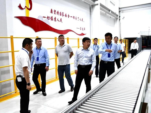 圖為李軍一行考察自動傳輸集貨作業(yè)現(xiàn)場