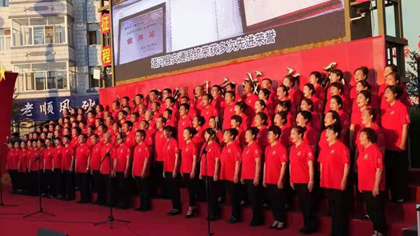 一曲曲動人的旋律蕩氣回腸,一陣陣激昂的歌聲傳遍四方。塔河縣局領導、縣直機關干部、林業(yè)局職工、公安民警、學校學生、老年大學學員等紛紛參與其中,表達著共同的祝愿共同的心聲。精彩的表演,讓演出一次次掀起高潮,也贏得了觀眾的陣陣熱烈掌聲。展演歷時近兩個多小時,最后在縣直機關干部表演的合唱曲目《我的祖國》《保衛(wèi)黃河》那震撼人心的歌聲中圓滿落下帷幕。