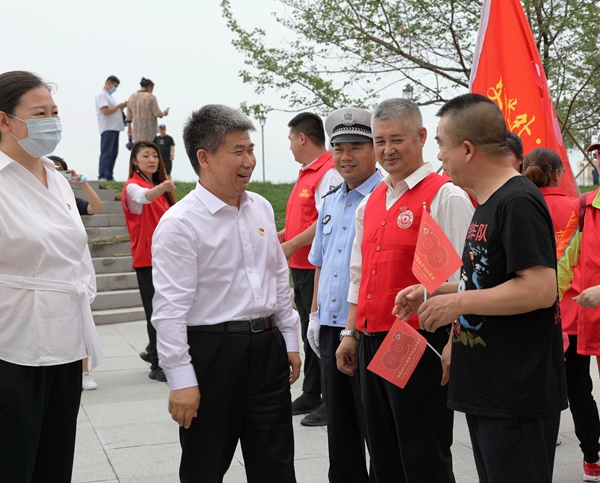 黑龍江經(jīng)濟網(wǎng)訊(侯軍 記者王振紅)7月1日,哈爾濱市道外區(qū)區(qū)委書記關(guān)世勛,區(qū)委常委、宣傳部部長王艷茹來到道外景陽廣場,慰問在這里開展“慶祝建黨百年 扮靚家園行動”志愿服務(wù)活動的黨員志愿者們,向他們致以節(jié)日的問候,送上黨組織的溫暖和關(guān)懷。