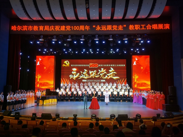 此次合唱展演是哈爾濱市教育局慶祝中國共產(chǎn)黨成立100周年系列活動之一,是推動黨史學(xué)習(xí)教育走深走實(shí)的生動載體,市教育局通過開展參與度高、覆蓋面廣、互動性強(qiáng)的展演活動,營造同慶百年華誕、共創(chuàng)歷史偉業(yè)的濃厚氛圍,凝聚起全市教育系統(tǒng)廣大黨員干部和教職員工永遠(yuǎn)跟黨走、奮進(jìn)新征程的磅礴力量,為建設(shè)黨和人民滿意的教育事業(yè)貢獻(xiàn)教育人的擔(dān)當(dāng),以優(yōu)異成績向黨的百年華誕獻(xiàn)禮。