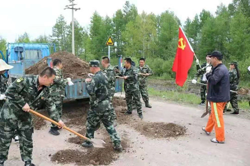 圍繞突出問題,辦好事、解民需。塔河林業(yè)局各基層單位在為民辦好事上下功夫,千方百計解決職工群眾關注的堵點、焦點問題,切實把黨史學習成效轉化為解民需的強大動力。防火辦黨委組織黨員干部組成行動黨小組深入到受汛情影響較為嚴重的居民群眾家中清理積水、立院墻和板杖子、搬運煤塊等勞動,切實解決了群眾水淹后帶來的生活實際問題;瓦拉干林場黨委積極響應“一團五盟”號召,協調瓦拉干派出所,聯合開展了“林地融合辦實事,修繕公路暖民心” 黨建聯盟主題活動,林場、鎮(zhèn)政府、派出所共有100余名職工參與,林場出動裝載機、運土車各一輛,運送填坑土料40余立方米,將長達3.5公里的坑洼路面及時進行了修繕,著力解決職工居民出行難問題,確保進場公路安全暢通。