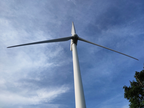 佇立在饒河縣大頂子山景區(qū)的風(fēng)力發(fā)電機(jī)