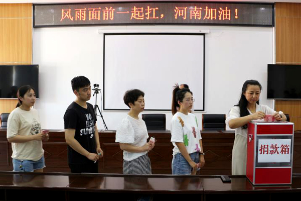 7月23日上午,捐款儀式在辦公樓五樓會議室舉行,干部職工紛紛慷慨解囊,50元、100元、200元……一份份愛心在這里匯聚傳遞。災(zāi)害無情,人有情,參加捐款的干部職工一起在“風(fēng)雨面前一起扛,河南加油!”的條幅上簽名,表達(dá)自己的心情,為河南人民加油打氣。目前,捐款款項(xiàng)已匯至紅十字會。