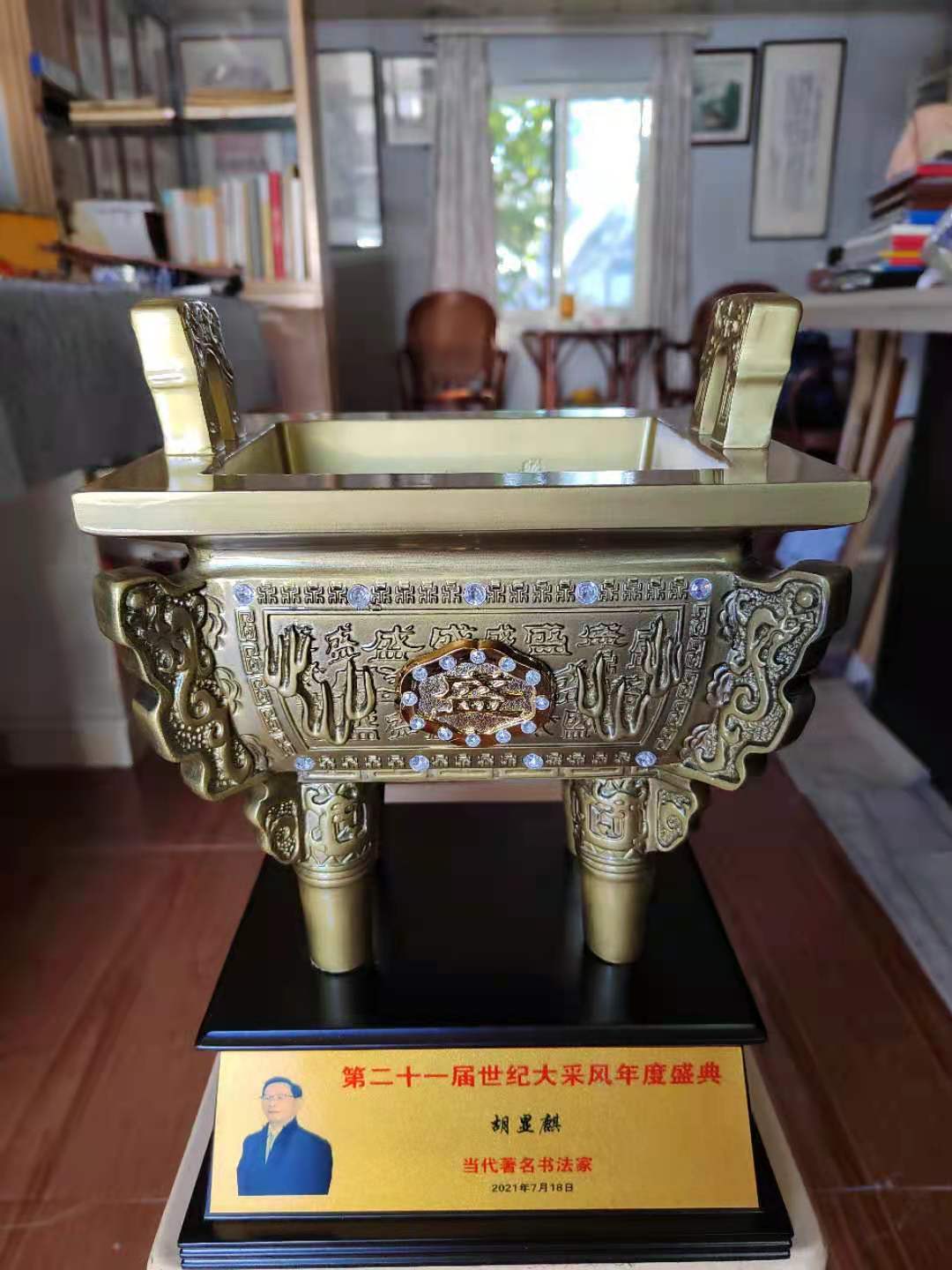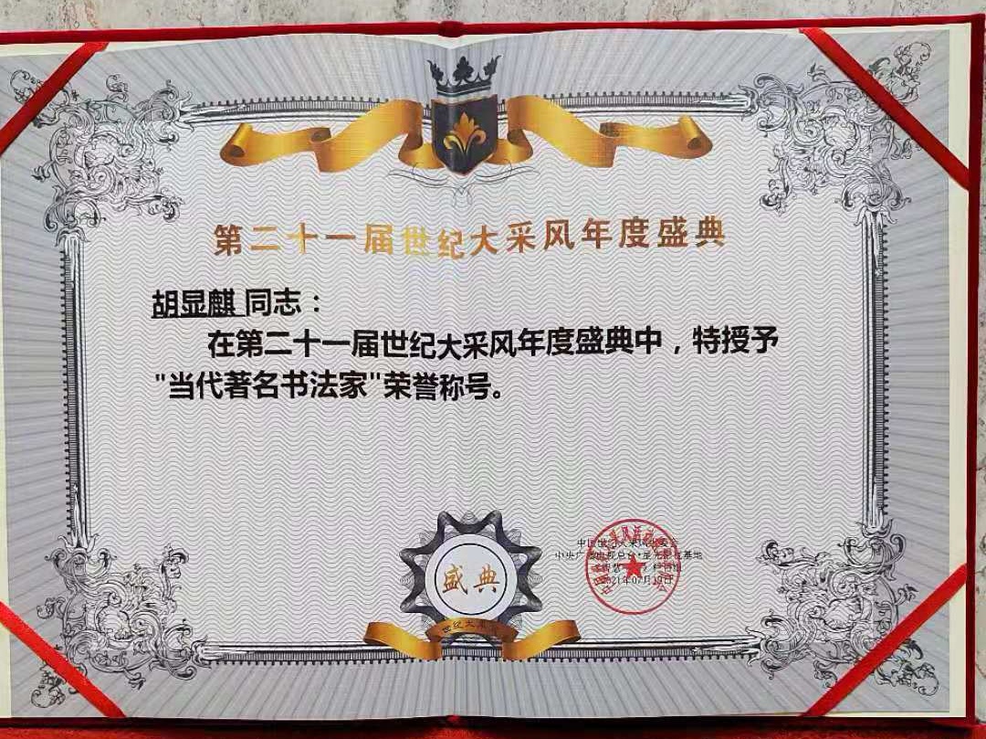 在第二十一屆世紀(jì)大采風(fēng)年度盛典中,特授予“當(dāng)代著名書法家”榮譽(yù)稱號,多次參加在海南三亞和北京全國政協(xié)大禮堂舉行的頒獎典禮。