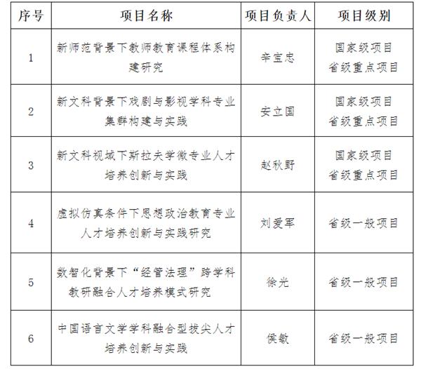 截止至8月5日,教育部首批新文科研究與改革實(shí)踐項(xiàng)目立項(xiàng)名單公示期結(jié)束,哈爾濱師范大學(xué)3項(xiàng)省級(jí)重點(diǎn)項(xiàng)目全部獲批國家級(jí)立項(xiàng),在省內(nèi)高校中名列前茅。這3項(xiàng)國家級(jí)項(xiàng)目分別是:辛寶忠教授主持的教育學(xué)領(lǐng)域新文科建設(shè)實(shí)踐項(xiàng)目《新師范背景下教師教育課程體系構(gòu)建研究》、安立國教授主持的藝術(shù)字領(lǐng)域新文科建設(shè)實(shí)踐項(xiàng)目《新文科背景下戲劇與影視學(xué)科專業(yè)集群構(gòu)建與實(shí)踐》、趙秋野教授主持的新文科復(fù)合型人才培養(yǎng)創(chuàng)新與實(shí)踐項(xiàng)目《新文科視域下斯拉夫?qū)W微專業(yè)人才培養(yǎng)創(chuàng)新與實(shí)踐》。