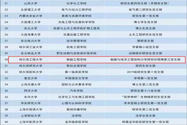 黑龍江經(jīng)濟(jì)網(wǎng)訊(全媒體見習(xí)記者 董廣碩 商祺)近日,教育部公布第二批全國高?!鞍賯€(gè)研究生樣板黨支部”和“百名研究生黨員標(biāo)兵”單位名單,哈爾濱工程大學(xué)船舶學(xué)院船舶與海洋工程結(jié)構(gòu)力學(xué)研究所碩博第三黨支部,以及智能學(xué)院博士研究生李明非榜上有名!