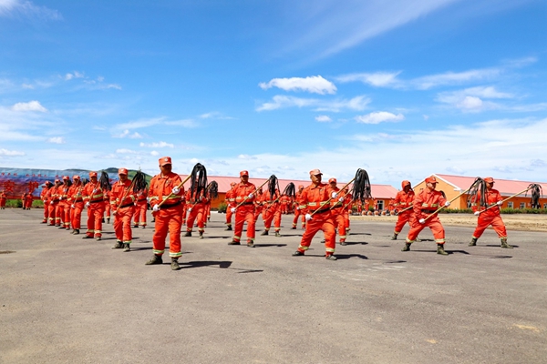 圖為阿木爾林業(yè)局“森防鐵軍”訓(xùn)練防火二號工具分解動作