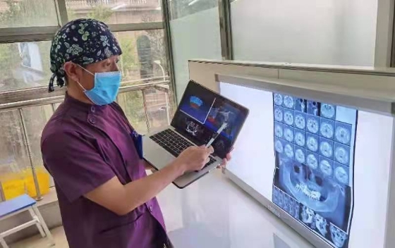 依托于“口腔北斗系統(tǒng)”新技術(shù),劉鑫教授團(tuán)隊(duì)在數(shù)字化口腔種植領(lǐng)域精耕細(xì)作,迄今已圓滿完成了上百例數(shù)字化種植牙手術(shù)。與傳統(tǒng)“自由手”口腔種植技術(shù)相比,數(shù)字化口腔種植手術(shù)更加安全、精準(zhǔn)、微創(chuàng)、高效、舒適。同時(shí),個(gè)性化的手術(shù)設(shè)計(jì)方案借助數(shù)字化的直觀、立體形式呈現(xiàn)在患者面前,便于醫(yī)患間直接面對(duì)面交流,既提升了種植手術(shù)的精確度和成功率,又節(jié)約了手術(shù)時(shí)間,減少了手術(shù)創(chuàng)傷,降低了術(shù)后并發(fā)癥。