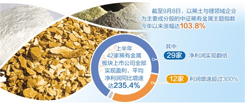 近幾個(gè)月,A股稀有金屬板塊呈現(xiàn)上漲行情。截至9月8日,以稀土與鋰領(lǐng)域企業(yè)為主要成分股的中證稀有金屬主題指數(shù)今年以來漲幅已達(dá)103.8%。