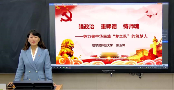 據(jù)了解,本次活動是黑龍江省教育廳慶祝第37個教師節(jié)的系列活動之一,由哈爾濱師范大學(xué)協(xié)辦、全國中小學(xué)繼續(xù)教育網(wǎng)技術(shù)支持舉辦。活動以“賡續(xù)百年初心,擔(dān)當(dāng)育人使命”為主題,由哈爾濱師范大學(xué)馬克思主義學(xué)院熊玉坤副教授講授題為《強政治、重師德、鑄師魂——努力做中華民族“夢之隊”的筑夢人》的思政課。課程圍繞提升教師思想政治素質(zhì)和師德水平、更好擔(dān)負(fù)起立德樹人根本任務(wù)展開,分為新時代加強和改進師德師風(fēng)建設(shè)的政治要求、新時代師德師風(fēng)建設(shè)的豐富內(nèi)涵、新時代強化師德師風(fēng)建設(shè)的對策思考三個部分,系統(tǒng)回答了新時代中小學(xué)教師思想政治和師德師風(fēng)建設(shè)為什么、是什么、怎么做的問題。