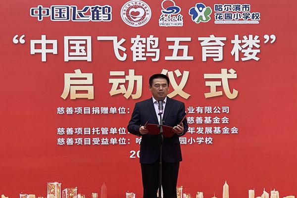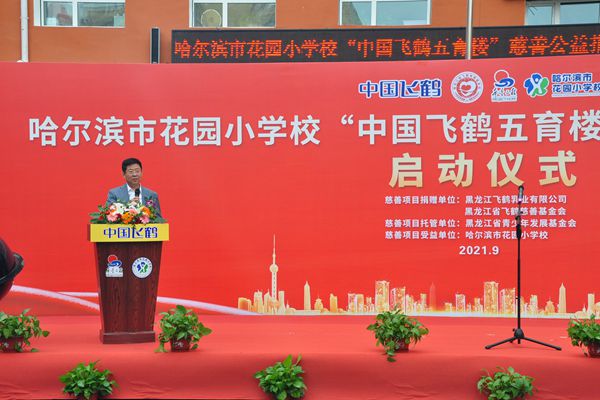 飛鶴乳業(yè)黨委書記、飛鶴慈善基金會理事長朱天龍在啟動儀式上說,在中秋國慶即將到來之際,我們滿懷喜悅的心情,在百年名校哈爾濱市花園小學校舉行“中國飛鶴五育樓”公益慈善助教項目啟動儀式,這是飛鶴乳業(yè)履行社會責任、情系教育事業(yè)的又一項助教工程。在黑龍江省貫徹落實黨中央“雙減”政策,深入推進五育并舉,促進學生德智體美勞全面發(fā)展的重要時期。飛鶴向哈爾濱市花園小學捐贈625萬元,用于花園小學“五育樓”項目改造,這是一項利在當代,功在千秋的公益慈善助教項目,旨在更好地優(yōu)化我省基礎教育教師學習培訓環(huán)境,為花園小學教學提供更好的辦學條件,也是助力黑龍江省基礎教育的改革。省教育廳副廳長姜同河、團省委副書記張濤對飛鶴乳業(yè)的慈善助教善舉給予充分的肯定和贊許。花園小學校長曹永鳴代表學校的孩子們向飛鶴乳業(yè)的慈善捐助表達深深的謝意!