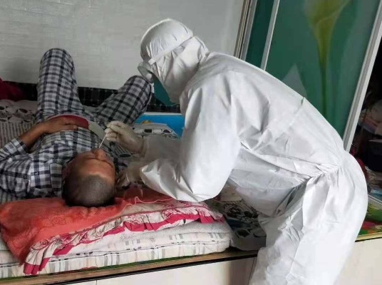 巴彥縣核酸采集現(xiàn)場還活躍著省醫(yī)院健康管理中心疾病康復部工作人員的身影,護士長李曉莉率先垂范,發(fā)揮黨員先鋒模范作用,帶隊“出征”;隊員徐賢紅克服低血鉀、全身無力等困難,積極參戰(zhàn);隊員林虹則空腹血糖達10mmol/L,帶著胰島素請求“參戰(zhàn)”。三人早晨7點開始核酸采集工作,深入到各個鄉(xiāng)鎮(zhèn)村屯,更將核酸采集工作延伸到老鄉(xiāng)家中,為臥床及行動不便的人進行核酸采集工作,中飯和晚飯都是快速的吃一口盒飯或者泡面就地解決,然后又迅速投入到工作中。據(jù)了解,疾病康復部人均年齡都在50歲左右,此次抗疫所有的同事都克服自身重重困難,為完成使命,勇往直前,盡顯龍醫(yī)人的本色。