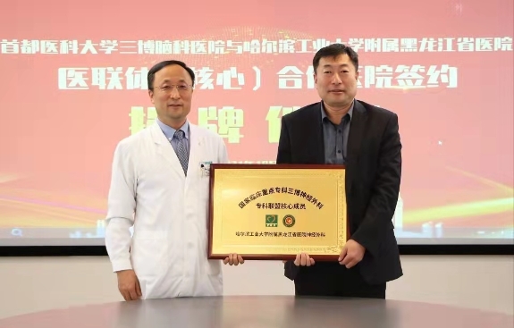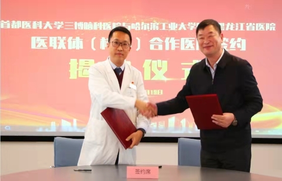 黑龍江經(jīng)濟網(wǎng)訊(林穎 董宇翔 梁新立) 10月19日,黑龍江省醫(yī)院與首都醫(yī)科大學三博腦科醫(yī)院結成醫(yī)聯(lián)體簽約揭牌儀式在北京舉行。今后雙方將在遠程會診、技術指導與支持、人才培養(yǎng)和資源共享等多方面開展緊密合作,攜手共進,優(yōu)勢互補,共同提高在神經(jīng)科學領域臨床、科研及教學水平,提升醫(yī)療服務能力,切實為黑龍江省及周邊地區(qū)百姓提供優(yōu)質的醫(yī)療衛(wèi)生服務。