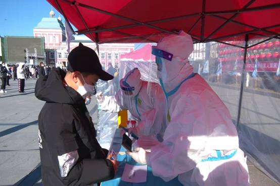 在呼瑪縣第二輪全民核酸實戰(zhàn)演練現(xiàn)場,雖然當(dāng)?shù)貧鉁匾呀?jīng)降至零下十度左右,但排隊的群眾都能夠做到嚴(yán)格遵守間隔一米、戴口罩、不聚集的規(guī)定,配合醫(yī)護(hù)人員高質(zhì)高效開展核酸檢測采樣。在社區(qū)、公安等各部門工作人員和志愿者的疏導(dǎo)下,檢測現(xiàn)場秩序井然、有條不紊。