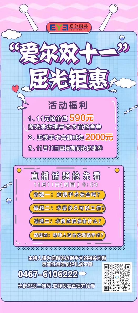 雞西愛(ài)爾眼科醫(yī)院近視手術(shù)雙十一鉅惠來(lái)襲!