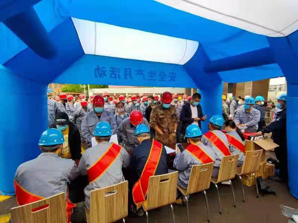 利用“安全生產(chǎn)月”和“安全生產(chǎn)龍江行”活動(dòng)開(kāi)展之機(jī),組織安全生產(chǎn)月主題宣傳、學(xué)規(guī)程贏獎(jiǎng)品、主題演講比賽、為安全生產(chǎn)獻(xiàn)計(jì)獻(xiàn)策活動(dòng)、直擊現(xiàn)場(chǎng)應(yīng)急處置知識(shí)抽查、安全事故警示片觀看、應(yīng)急救援和CPR救護(hù)比武、300平燒結(jié)作業(yè)區(qū)皮帶著火事故應(yīng)急演練、二級(jí)主管公開(kāi)課、安全知識(shí)競(jìng)賽等11個(gè)安全活動(dòng),制作板報(bào)49塊、標(biāo)語(yǔ)84個(gè)、橫幅55條、彩虹門(mén)3個(gè)、景觀4處、展板、彩旗、飄旗等宣傳用品,讓濃濃的安全教育氛圍時(shí)刻影響著每名員工。