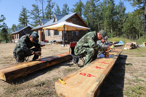 阿木爾林業(yè)局職工制作旅游導(dǎo)覽牌(王力 攝)
