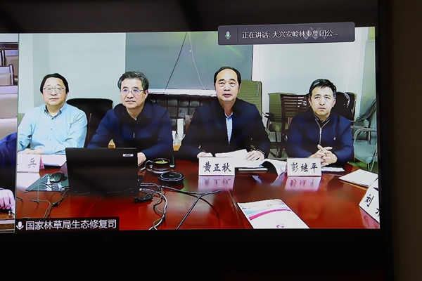 簽約儀式以視頻的形式召開。生態(tài)司司長(zhǎng)、司支部書記張煒,副司長(zhǎng)(正司局級(jí))、司支部副書記黃正秋,生態(tài)司二級(jí)巡視員、司支委組織委員潘兵,綜合處處長(zhǎng)、一級(jí)調(diào)研員彭繼平,森林城市處處長(zhǎng)、一級(jí)調(diào)研員、司支委紀(jì)檢委員楊春,生態(tài)處副處長(zhǎng)、三級(jí)調(diào)研員、司支委學(xué)習(xí)委員劉羿,在國(guó)家林草局主樓501房間,集團(tuán)公司黨委常委、副總經(jīng)理劉志,集團(tuán)公司生態(tài)修復(fù)管理處處長(zhǎng)劉繼明,集團(tuán)公司黨委老干部處(組織部副處長(zhǎng))范學(xué)利,阿木爾林業(yè)局黨委書記胡守慶,阿木爾林業(yè)局黨委副書記、局長(zhǎng)韓鳳泉,阿木爾林業(yè)局黨委副書記呂光鑫,阿木爾林業(yè)局黨委委員、組織部部長(zhǎng)王立昆在大興安嶺林業(yè)集團(tuán)公司視頻會(huì)議室,參加了會(huì)議。