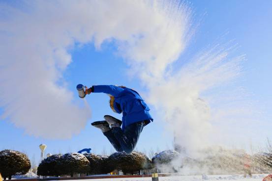 在三江口生態(tài)旅游區(qū)觀光塔上觀賞北國風(fēng)光、千里冰封、萬里雪飄的壯美景觀,體驗潑水成冰的神奇感受,將冰花四濺的瞬間捕捉在鏡頭中,印刻在腦海里。