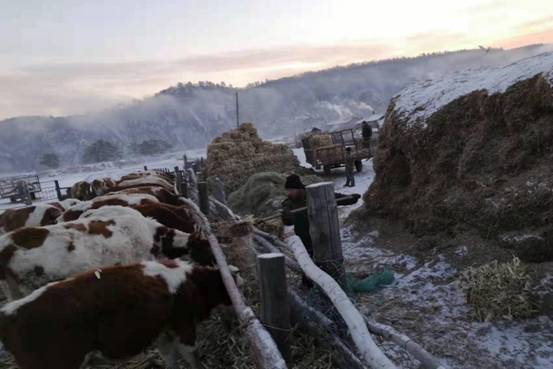 黑龍江經濟網訊(殷傳武記者馬朝林)黑龍江大興安嶺的冬季有著聞名全國的個性,室外零下二三十度的嚴寒襯著漫山潔白的雪色,構成北國最有代表性的名片。在這樣的冬景中走進大興安嶺林業(yè)集團公司韓家園林業(yè)局紅星林場職工黃松家的牛舍,感受到的卻是一種生活的勁頭與熱情。100多頭各色相間的牛分布在4個欄舍中,各角落不時傳來低沉的哞叫,黝黑明亮的牛眼和順的打量著外來的陌生人,空氣中混和著飼草的味道,升騰起一股強烈濃重的生活感。