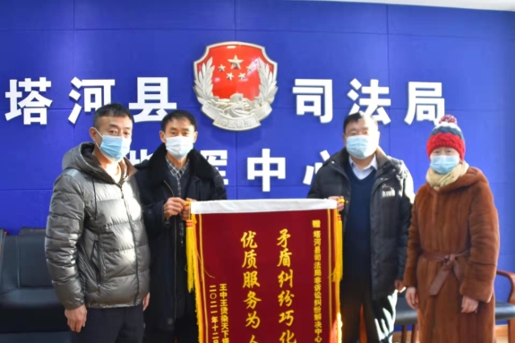 黑龍江經(jīng)濟(jì)網(wǎng)訊(吳慶勇 周楠)近日,塔河縣氣溫驟降,居民徐麗莉、田桂龍夫妻不顧寒冷,滿懷感恩的心將“矛盾糾紛巧化解,優(yōu)質(zhì)高效為人民”的錦旗送到塔河縣司法局,表達(dá)對(duì)塔河縣司法局非訴訟糾紛解決中心公正、高效為民解憂的感謝之情。