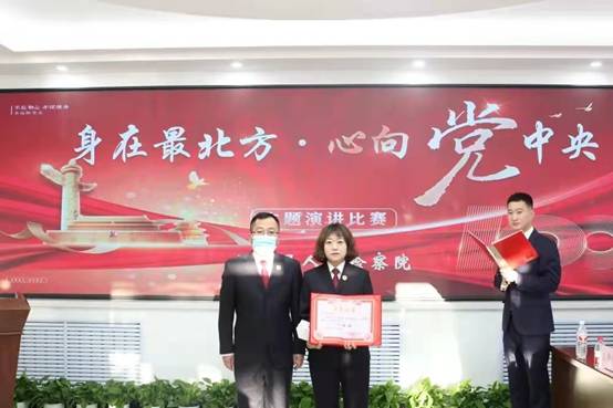 9名參賽選手隊相繼登臺,將演講內(nèi)容與背景音樂、PPT展示相結(jié)合,圖文并茂,形式新穎,感染力強。演講中,選手們緊緊圍繞“身在最北方·心向黨中央”這一主題,用誠摯飽滿的熱情、激情澎湃的語言講述了自己的心得和感悟、講述了黨的誕生、成長、奮斗的艱難歷程,用生動的故事詮釋了黨勇?lián)鷷r代重任的魄力和為人民服務(wù)的宗旨,用豪邁的激情抒發(fā)著對黨的忠誠、對祖國的熱愛和對共產(chǎn)主義的堅定信仰。同時,結(jié)合自身實際,展現(xiàn)了檢察機關(guān)干警愛崗敬業(yè)、為民執(zhí)法的精神和情懷,表達了對黨的事業(yè)和檢察工作的拳拳之情。整個比賽氣氛熱烈、精彩紛呈,選手們的深情演說感染了現(xiàn)場每位評委和觀眾,贏得了陣陣熱烈掌聲。