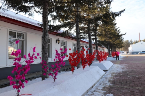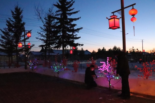 走進依西肯林場辦事處,映入眼簾的是寬敞整潔的場院,充滿中國元素的復古紅燈籠,白色的雪墻襯托著粉色、紅色的手工插花,渾然一體,美輪美奐。當夜幕降臨,五彩相間的霓虹流光溢彩,顯得格外奪目,交相輝映,燈光閃耀,年味十足,處處洋溢著喜慶的味道,更是將元旦、春節(jié)喜慶、祥和的氛圍渲染得淋漓盡致,讓人忍不住駐足觀賞。