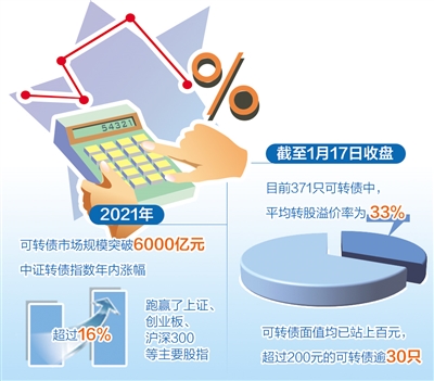 個(gè)券轉(zhuǎn)股溢價(jià)率也在不斷攀升。同花順iFinD數(shù)據(jù)顯示,截至1月17日收盤,目前371只可轉(zhuǎn)債中,平均轉(zhuǎn)股溢價(jià)率為33%;同時(shí),可轉(zhuǎn)債面值均已站上百元,超過200元的可轉(zhuǎn)債逾30只。專家表示,當(dāng)前市場流動(dòng)性較為充沛,機(jī)構(gòu)轉(zhuǎn)債配置需求旺盛,支撐可轉(zhuǎn)債市場景氣度。同時(shí),在資管新規(guī)背景下,銀行理財(cái)加速凈值化轉(zhuǎn)型,部分理財(cái)資金進(jìn)入轉(zhuǎn)債市場,進(jìn)一步推升個(gè)股溢價(jià)率。