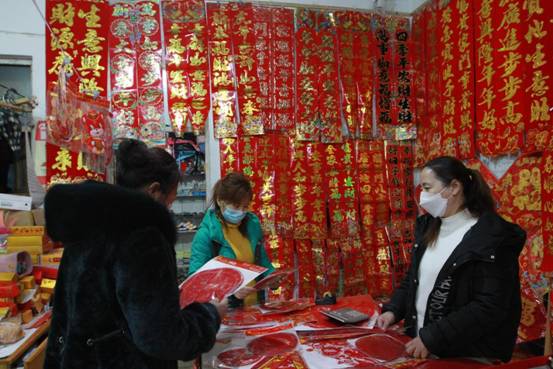 節(jié)慶用品的攤位上,受年輕人喜歡的LED串燈,小朋友們愛不釋手的虎年燈籠,老人們必買的吉祥年畫,讓人目不暇接。在陳娟超市的入口處,樹立著醒目的防疫提示牌,顧客需自覺地掃碼、測溫、帶口罩方可進(jìn)入超市購買商品。超市的工作人員忙著將一車車貨物上架補(bǔ)貨,各種各樣的新鮮蔬菜和五顏六色的水果擺滿貨臺,老百姓需要的年貨應(yīng)有盡有。由于市場人流量密集,超市嚴(yán)格遵守人員、貨品、場所等各項(xiàng)疫情防控要求,每天都有專人進(jìn)行消殺,在滿足職工群眾購買年貨需求的同時,確保了職工群眾的健康安全。