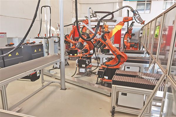 哈工大為企業(yè)研制的自動化冰刀生產(chǎn)線的焊接機器人。
