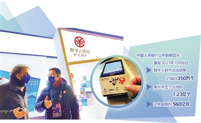 2017年起,人民銀行與商業(yè)銀行、互聯(lián)網(wǎng)公司等合作,共同進(jìn)行數(shù)字人民幣研發(fā)。2019年末,數(shù)字人民幣開(kāi)始試點(diǎn),目前,人民銀行已經(jīng)在深圳、蘇州、雄安、成都、上海、海南、長(zhǎng)沙、西安、青島、大連等地和2022年北京冬奧會(huì)場(chǎng)景開(kāi)展數(shù)字人民幣試點(diǎn)。中國(guó)人民銀行公布的數(shù)據(jù)顯示,截至2021年10月8日,數(shù)字人民幣試點(diǎn)場(chǎng)景已超過(guò)350萬(wàn)個(gè),累計(jì)開(kāi)立個(gè)人錢包1.23億個(gè),交易金額約560億元。