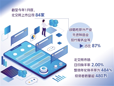 2021年11月15日,北京證券交易所正式揭牌開(kāi)市,截至目前已滿3個(gè)月。記者日前獲悉,截至2022年1月底,北交所上市公司84家,戰(zhàn)略性新興產(chǎn)業(yè)、先進(jìn)制造業(yè)、現(xiàn)代服務(wù)業(yè)等占比87%;新三板創(chuàng)新層掛牌公司1221家、基礎(chǔ)層掛牌公司5694家,呈現(xiàn)出“金字塔”結(jié)構(gòu)。目前,符合北交所上市財(cái)務(wù)條件的掛牌公司超過(guò)千家。