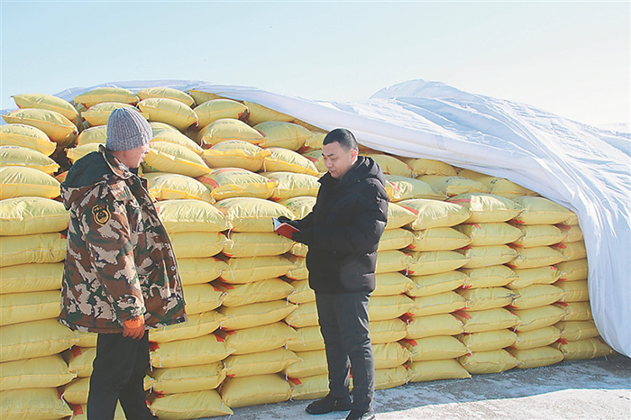 日前,在北大荒集團(tuán)趙光農(nóng)場(chǎng)有限公司第六管理區(qū)曬場(chǎng)上,幾個(gè)人正在對(duì)碼放整齊的化肥進(jìn)行盤點(diǎn),其中一個(gè)人認(rèn)真地做著記錄,他就是農(nóng)場(chǎng)第六管理區(qū)種植戶劉明亮。