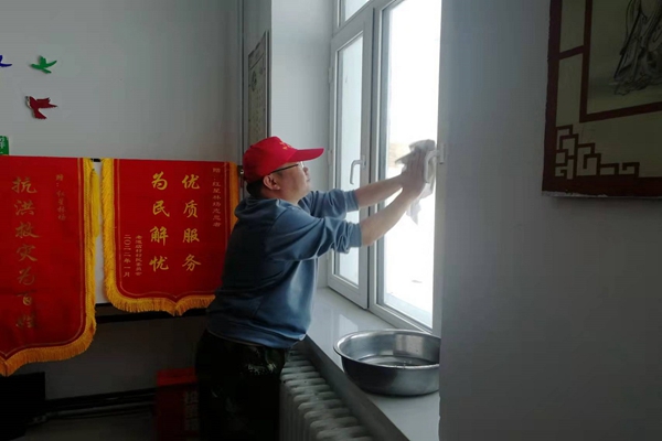 活動中,志愿者們分兵兩路,一路手持掃帚、鐵锨,對場區(qū)周邊垃圾、雜物、冰雪進(jìn)行清理,另一路志愿者們手持掃帚、抹布、墩布等清潔用具紛紛投入到室內(nèi)衛(wèi)生清潔服務(wù)活動,大家從屋頂?shù)降孛妗淖烂娴酱蹭?、從餐廳到洗漱間來了一次全方位無死角的大掃除,利用一個上午的時間,還原了一個干凈整潔的辦公生活環(huán)境。