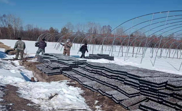為了能更好地完成2022年的育苗生產計劃,苗圃領導班子帶領單位業(yè)務骨干到苗圃地和輕基質生產車間進行實地調研,由于氣候原因,圃地積雪未消,生產用泥炭土凍結嚴重,輕基質生產車間沒有供暖設備,無法在苗圃開展輕基質容器杯生產工作。