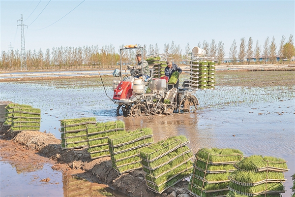 連日來,玖成水稻種植合作社的水稻插秧工作緊張有序地進行。截至24日10時,播種水稻秧苗4萬畝。袁勝海高興地說:“今年能比計劃提前一天時間完成播種任務(wù),得益于合作社大力推廣科學(xué)種植技術(shù)。”