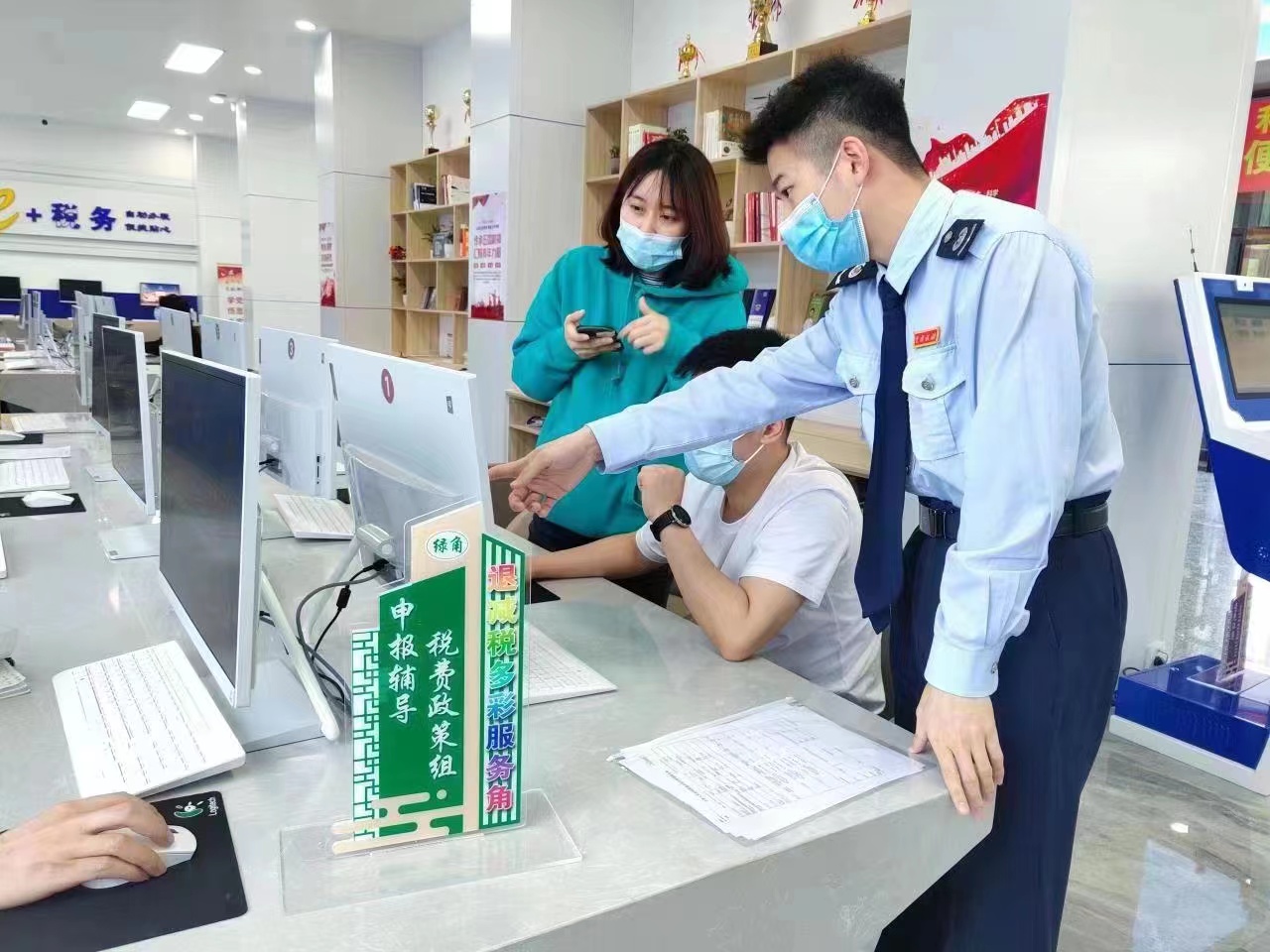 服務(wù)角暖人心,“政策直達(dá)”快起來。為實(shí)現(xiàn)新的組合式稅費(fèi)支持政策直達(dá)快享,該局在辦稅服務(wù)廳開設(shè)退稅減稅功能服務(wù)專區(qū),在醒目位置設(shè)置“退稅減稅多彩服務(wù)角”“先鋒云坐席”。退稅減稅多彩服務(wù)角,細(xì)化分為六個功能服務(wù)角: 政策宣傳紅角、難點(diǎn)攻堅(jiān)藍(lán)角、申報(bào)輔導(dǎo)綠角、退稅審批金角、暖心服務(wù)橙角和意見征集紫角,由多彩黨員先鋒隊(duì)中的各部門、各支部業(yè)務(wù)骨干(紅、藍(lán)、綠、金、橙、紫先鋒)輪流進(jìn)駐各個服務(wù)角,分別開展專項(xiàng)退減稅服務(wù),做到按企施策到位、優(yōu)惠政策直達(dá)到位、精簡流程服務(wù)到位,“真金白銀”快享到位?!跋蠕h云坐席”由辦稅服務(wù)廳2個黨員先鋒崗組成,專職負(fù)責(zé)線上退稅減稅服務(wù)。退稅減稅功能服務(wù)專區(qū)的建立,既做到了內(nèi)部協(xié)同,又兼顧了內(nèi)外銜接;既做到了“在大廳專區(qū)有專人快速辦理退稅減稅專事”,又打通了面向社會的服務(wù)通道。