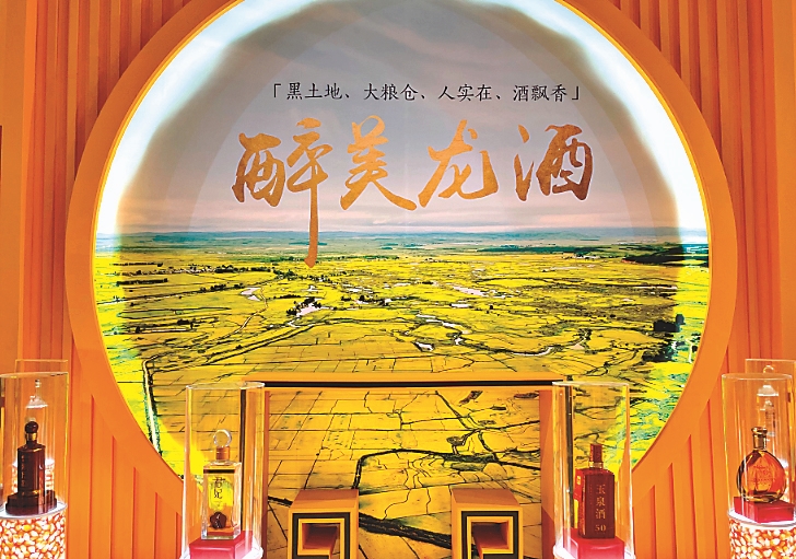 第104屆全國糖酒商品交易會上,龍江白酒展區(qū)。