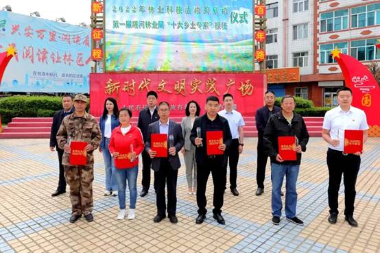 出席活動的林業(yè)局領導為塔河林業(yè)局“十大鄉(xiāng)土專家”頒發(fā)了授任證書和獎杯。