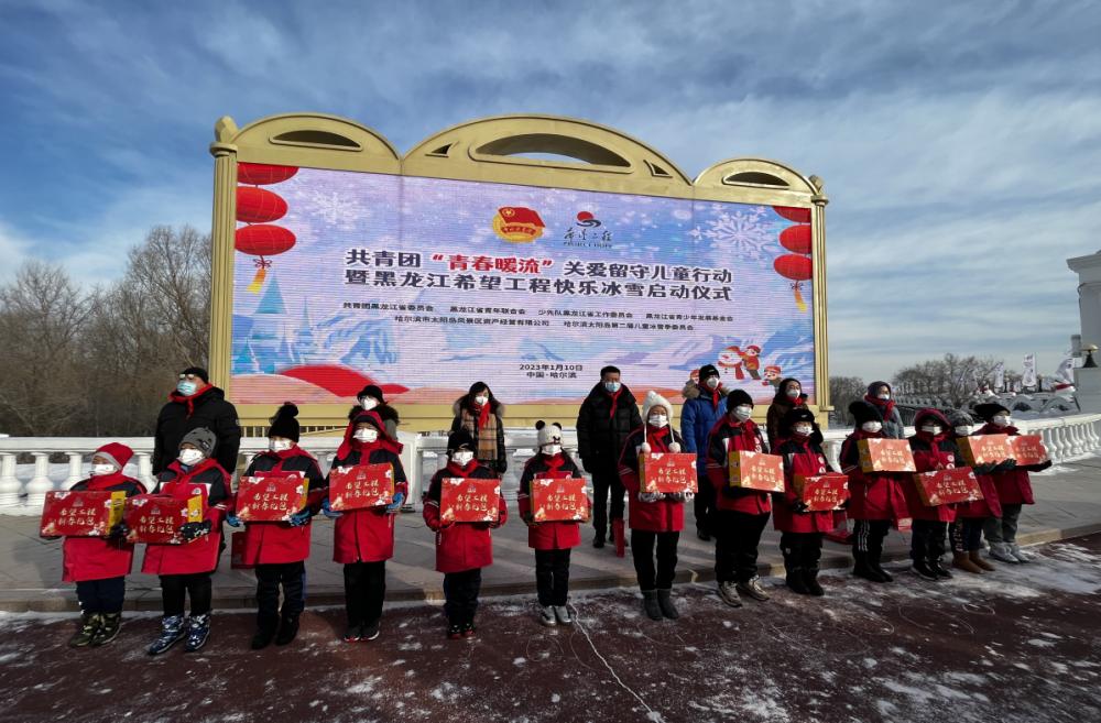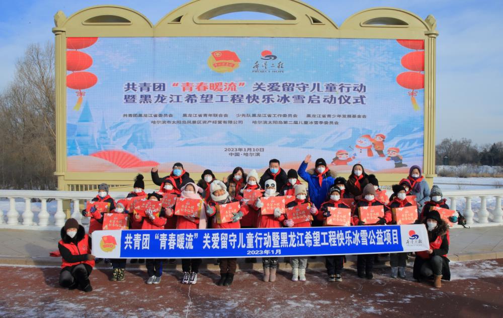 黑龍江經(jīng)濟網(wǎng)訊(于佳弘 記者祝東)1月10日上午,共青團“青春暖流”關愛留守兒童行動暨黑龍江希望工程快樂冰雪公益項目啟動儀式在哈爾濱太陽島國際雪博會舉行?;顒佑晒睬鄨F黑龍江省委員會指導,由黑龍江省青年聯(lián)合會、少先隊黑龍江省工作委員會、黑龍江省青少年發(fā)展基金會聯(lián)合舉辦,并得到了太陽島風景區(qū)資產(chǎn)經(jīng)營有限公司、哈爾濱太陽島第二屆兒童冰雪季組委會、哈爾濱市松北前進小學校的大力支持。共青團黑龍江省委副書記夏天、哈爾濱市太陽島風景區(qū)資產(chǎn)有限公司黨委書記、董事長趙經(jīng)濤和黑龍江省青聯(lián)、黑龍江省少工委、黑龍江省青基會以及來自哈爾濱市松北區(qū)前進小學的留守兒童和黑龍江大學的留學生,共70余人參與了活動。